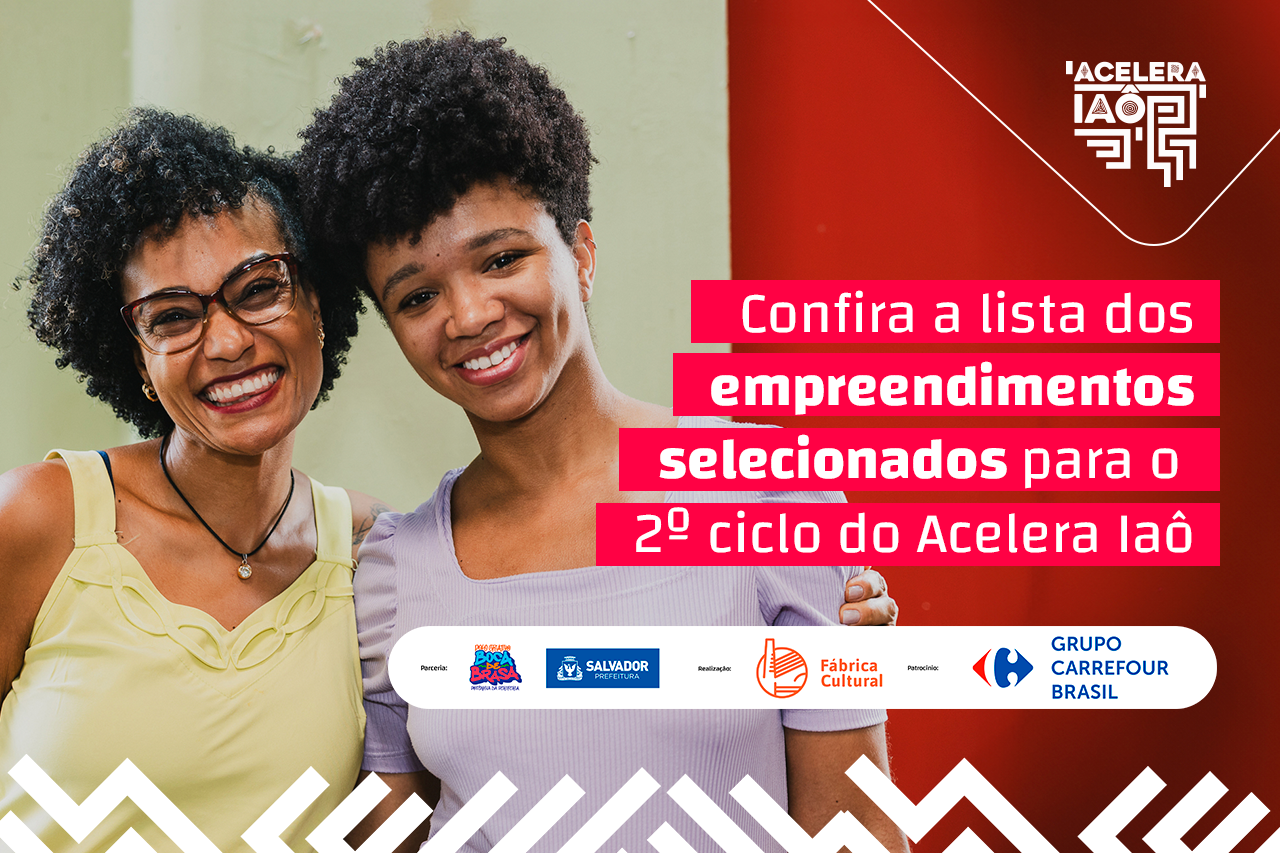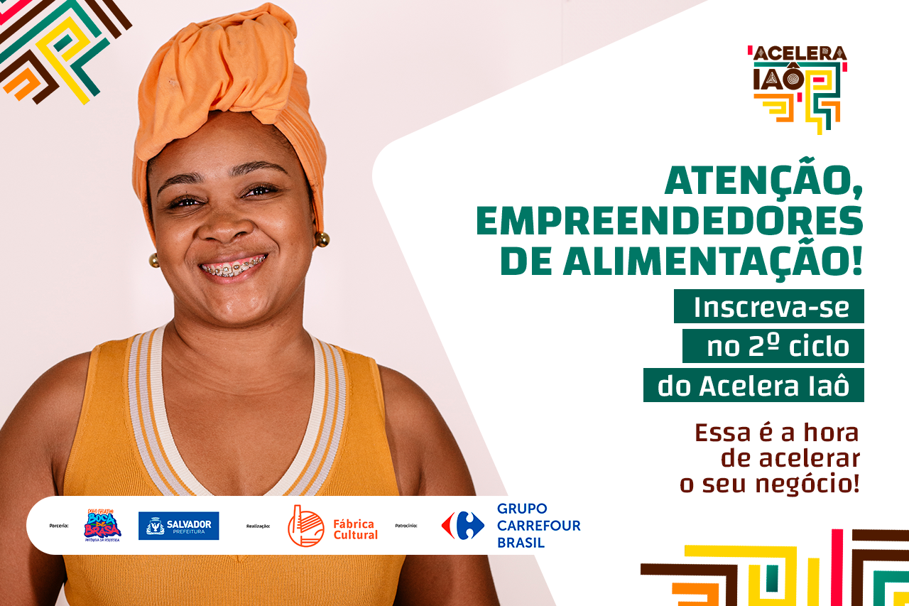 Com a proposta de promover os afroempreendedores baianos, a Fábrica Cultural está realizando o Acelera Iaô - Programa de Afroempreendedorismo que fomenta o trabalho de empreendimentos negros baianos por meio do apoio, da qualificação e da aceleração dos negócios criativos. O Acelera Iaô promove e impulsiona a educação empreendedora afro centrada, a economia criativa e a comunicação digital. O estímulo à autonomia e à geração de renda são também alguns propósitos do programa de formação, que compreende o conhecimento técnico/estético/criativo e o uso das ferramentas digitais e visa fortalecer cerca de 1500 negócios. O Programa conta com o apoio da Prefeitura Municipal de Salvador e com o patrocínio do Grupo Carrefour Brasil, que vem atuando no combate à desigualdade racial no país, com foco em quatro frentes de trabalho: o empreendedorismo, a educação, a empregabilidade e o combate à discriminação.